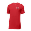 This Nike performance tee features sweat-wicking fabric to help keep you dry and comfortable. Durable rib knit crew neck. Heat transfer label for tag-free comfort. Double-needle stitching throughout. Contrast heat transfer Swoosh design trademark on left sleeve. Contrast heat transfer Dri-FIT logo at right hem. Made of 4.7-ounce, 60/40 cotton/poly Dri-FIT fabric.